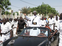 Serigne Modou Kara Mbackè a été accueilli par une foule nombreuse de disciples hommes et femmes venus tôt le matin s’installer dans l’abri aménagé devant la résidence de Serigne Fallou MBACKE où d’ailleurs le kurel du Diwan s’est livré à une belle prestation de la mélodie originale de " Daroul Mouhty"