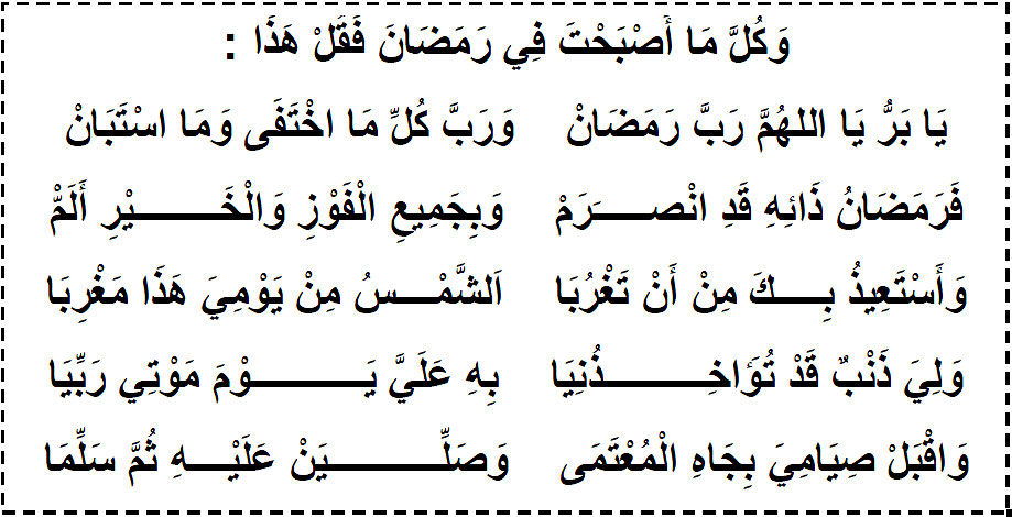 Yâ barru yâl lâhumma rabba ramadân Wa